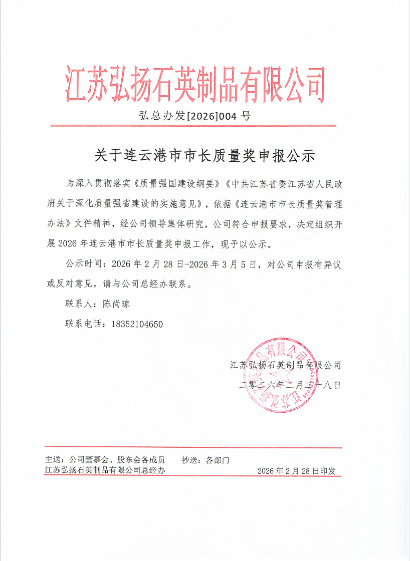 关于连云港市市长质量奖申报公示